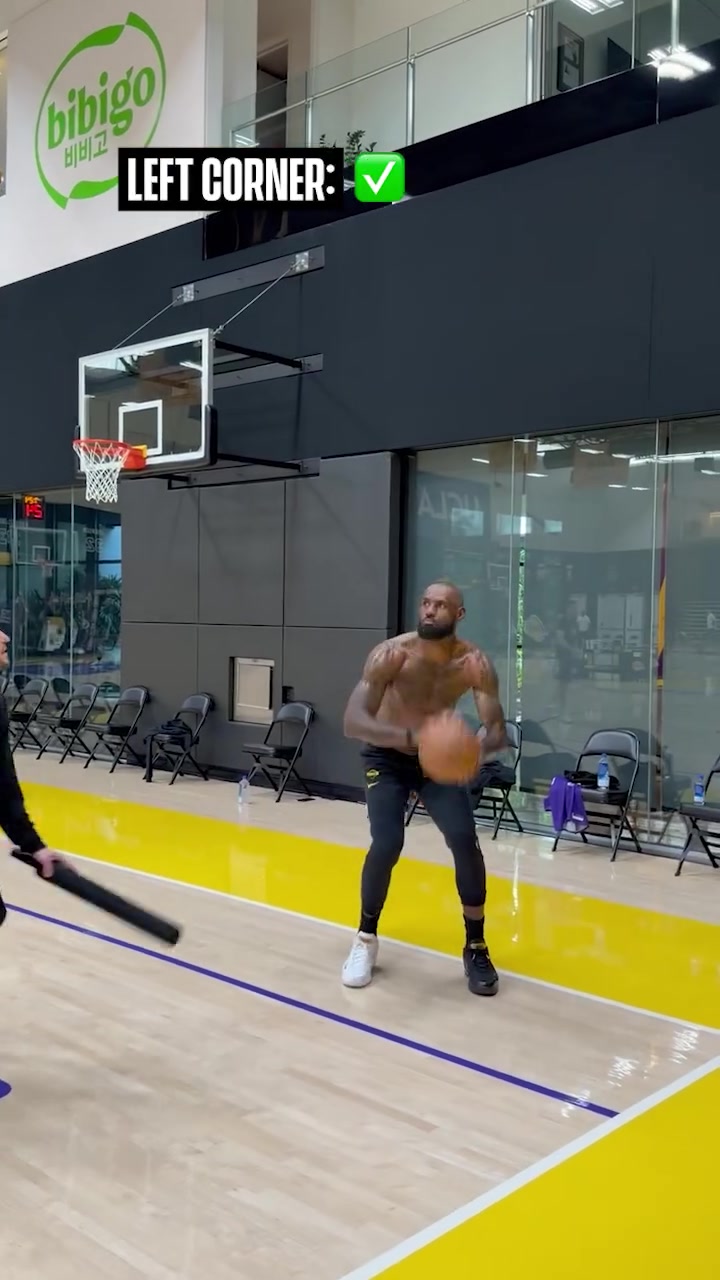 打磨手感!湖人官方晒詹姆斯练习三分:五个位置连续投进10记三分